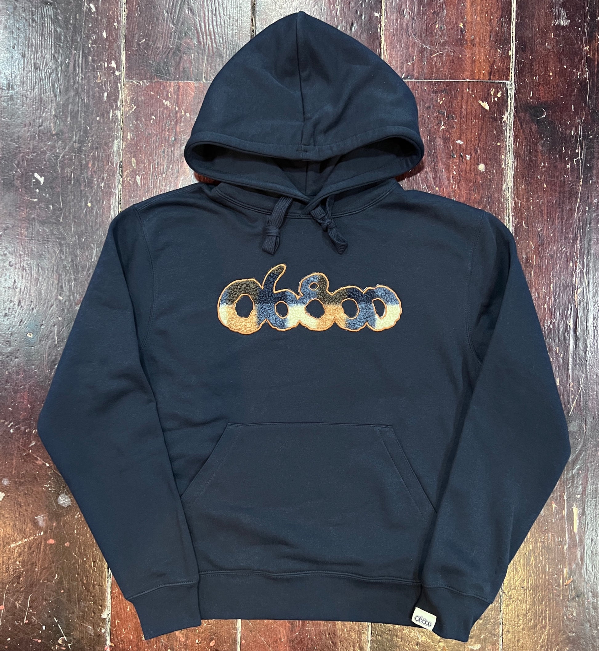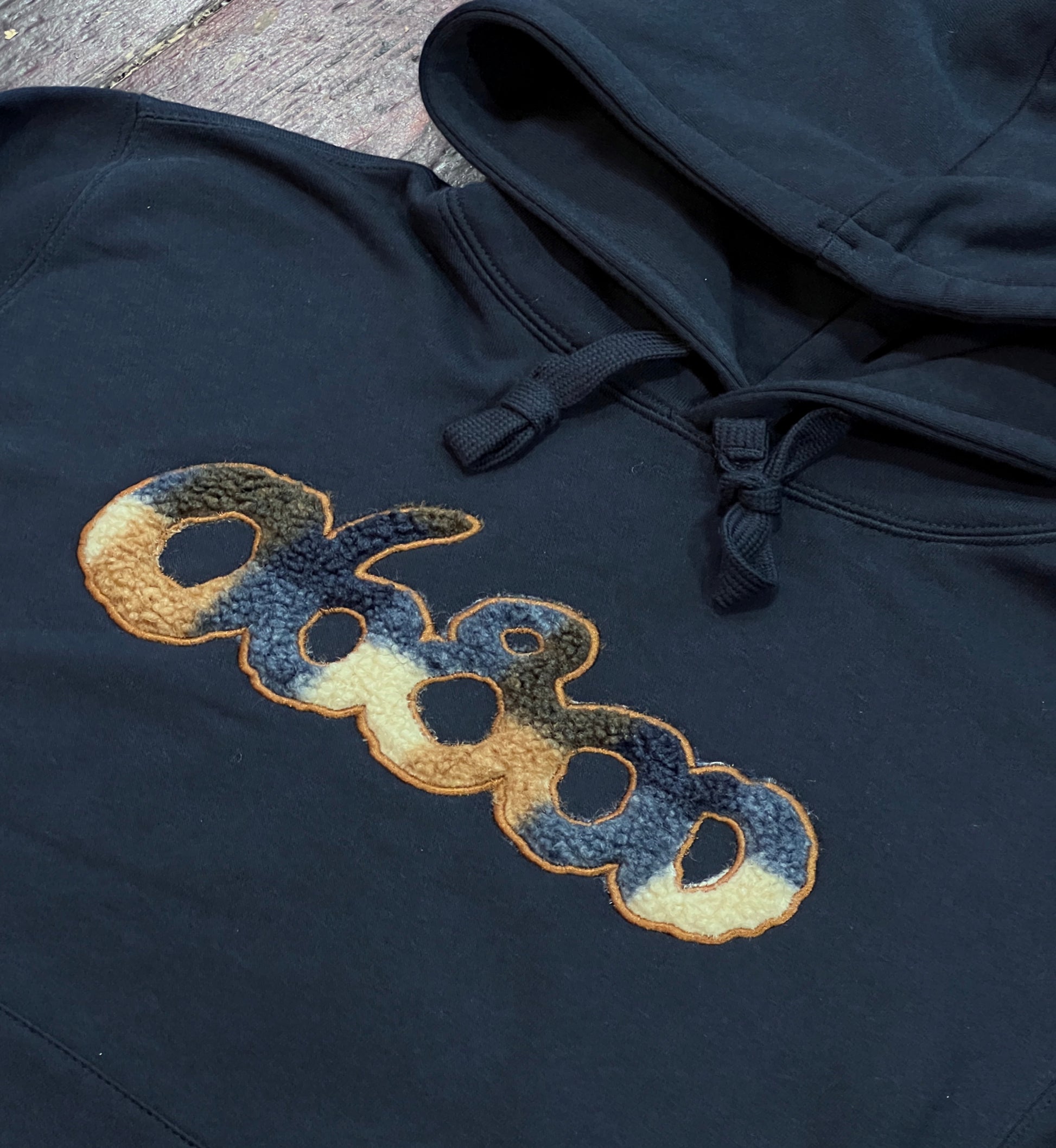 SUDADERA AZUL MARINO CON TELA DE BORREGUITO A CUADROS Y BORDADO