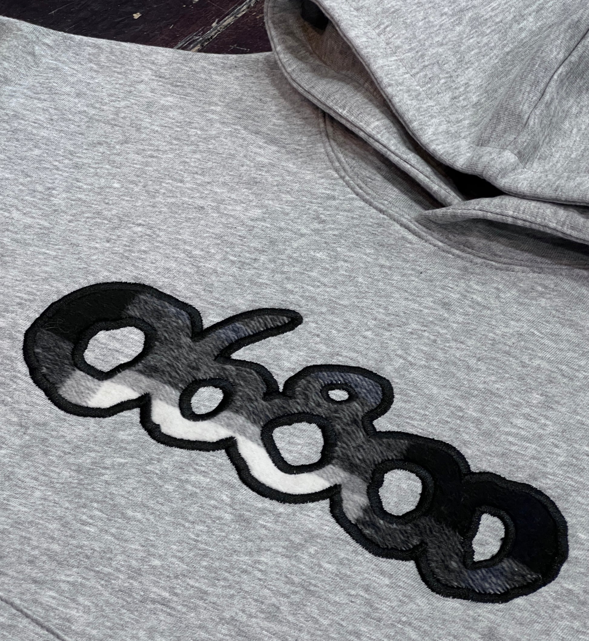 SUDADERA GRIS CON TELA A CUADROS BLANCO Y NEGRO BORDADO